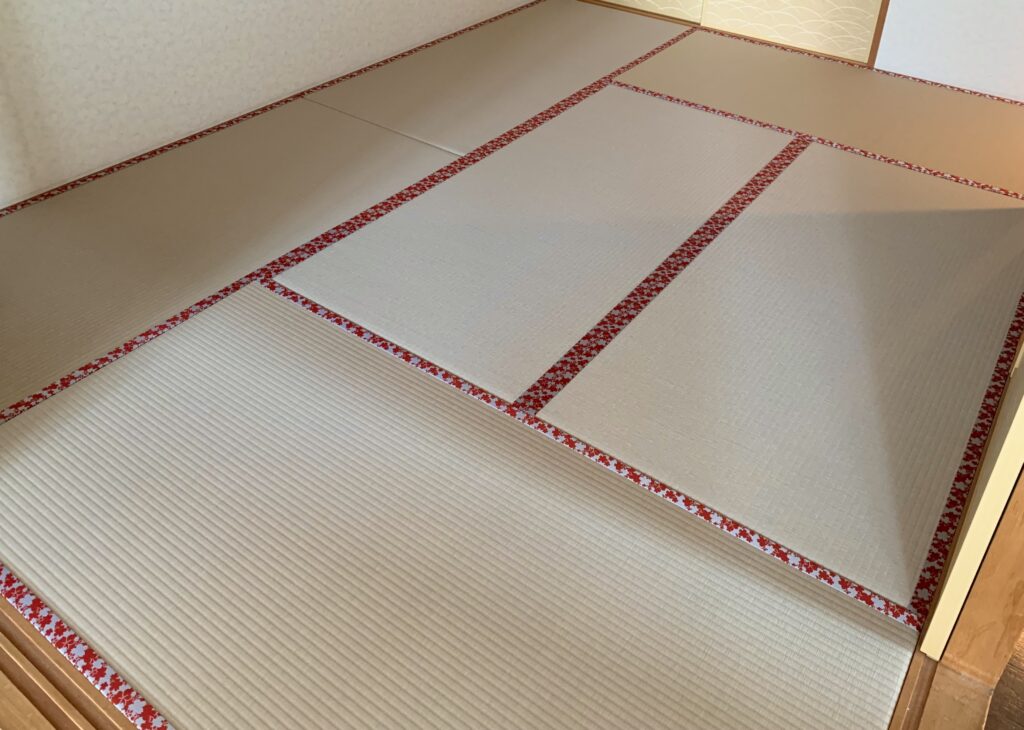 【和紙の畳表】堺市北区のお客様 大阪の畳 桂畳工房 施工例 2026.03.30 堺市北区のお客様よりご依頼いただいたのは 和紙でできた畳表。 こちらの畳表は和紙をこより上にして織りあげた畳表です。 灰桜色 いろんなカラーがありいろんな畳ヘリを使用して とてもモダンなお部屋にすることができます。 またカビの生えにくい畳表として人気があります。 モダンなおしゃれなお部屋にお客様も大変お喜びいただけました❗️ ありがとうございました😊 ※過去PIC